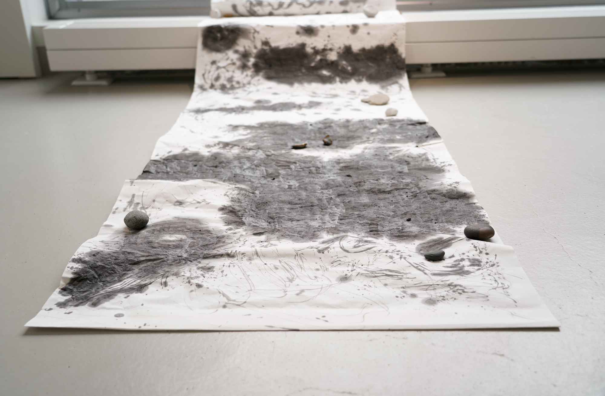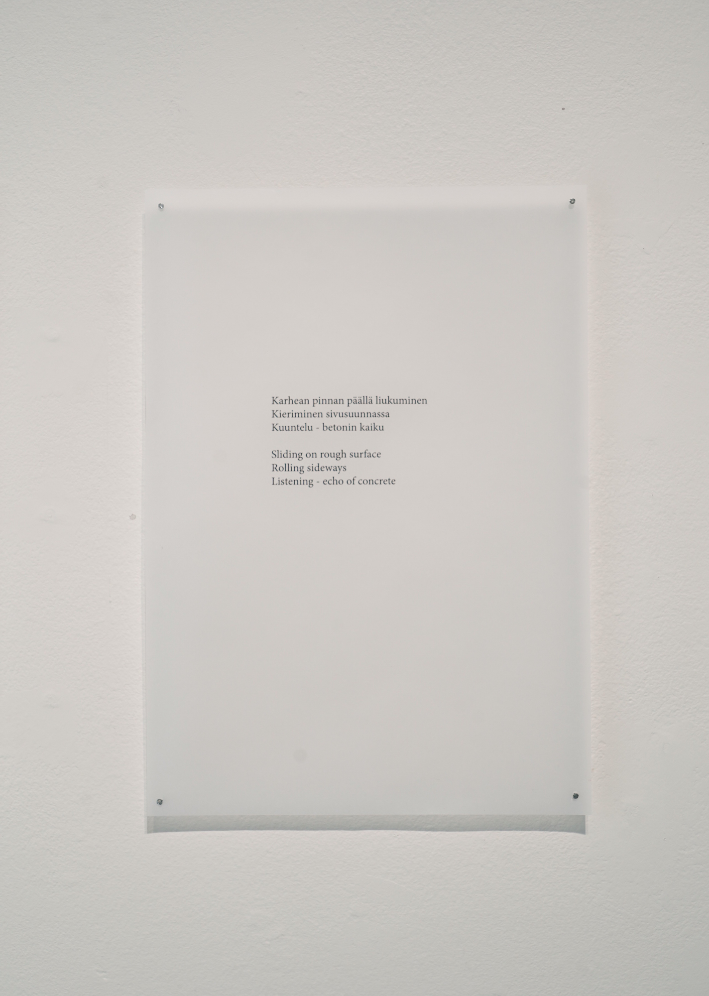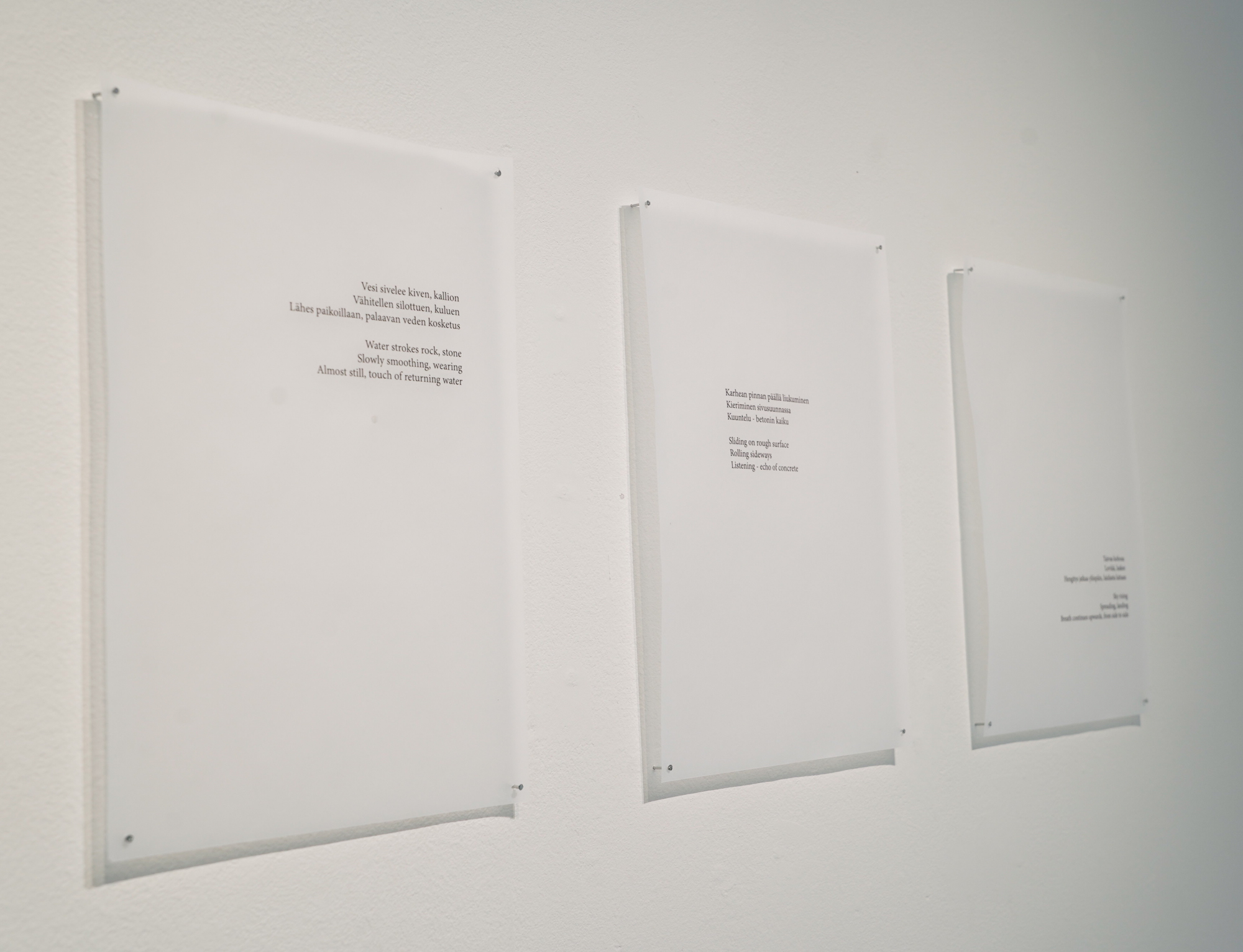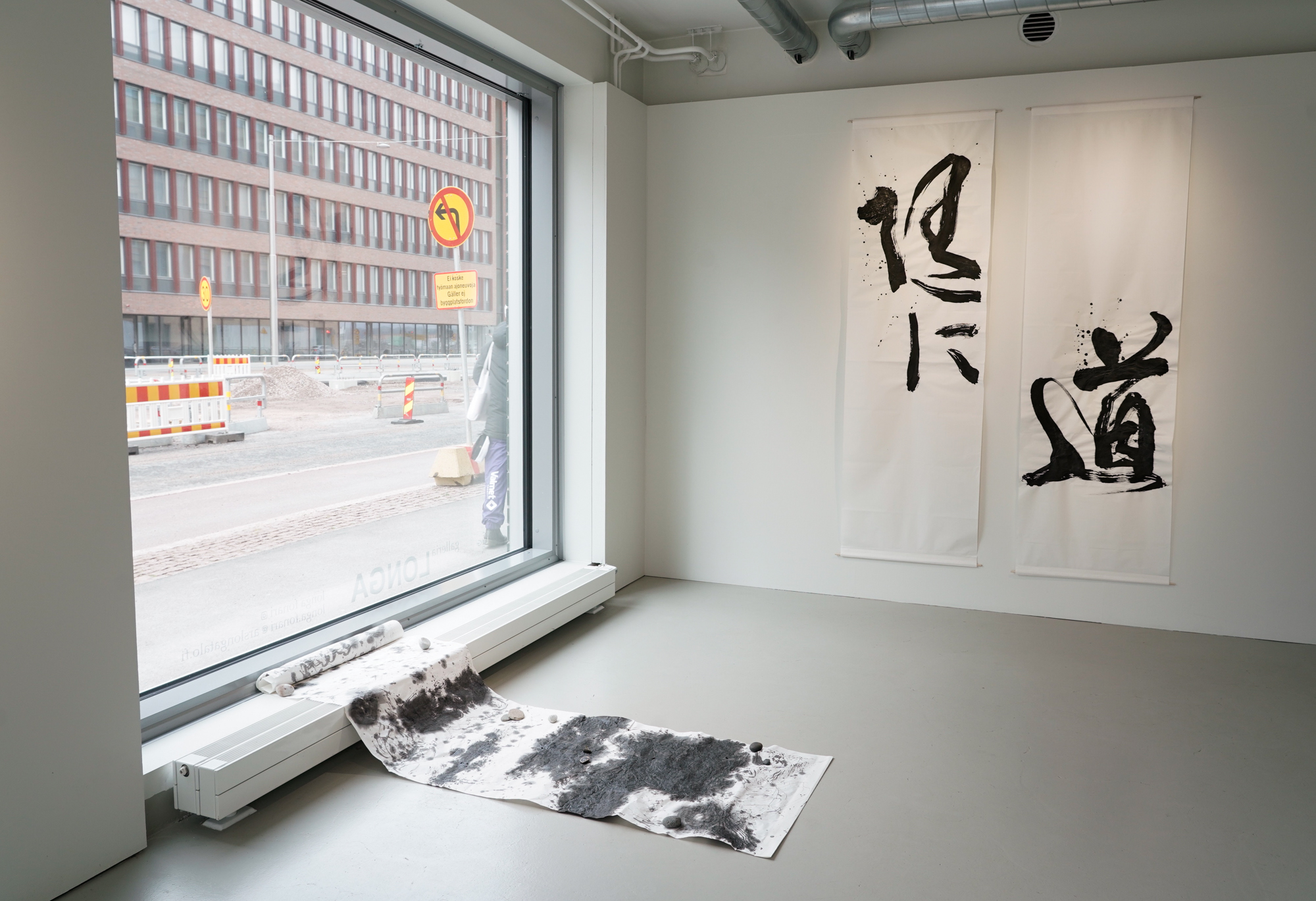 Days get longer is an exhibition by Inari Virmakoski, Tuuli Malla, Mari Mäkiö and Yukina Yamamoto. It includes two video works, Japanese calligraphy and movement texts.
