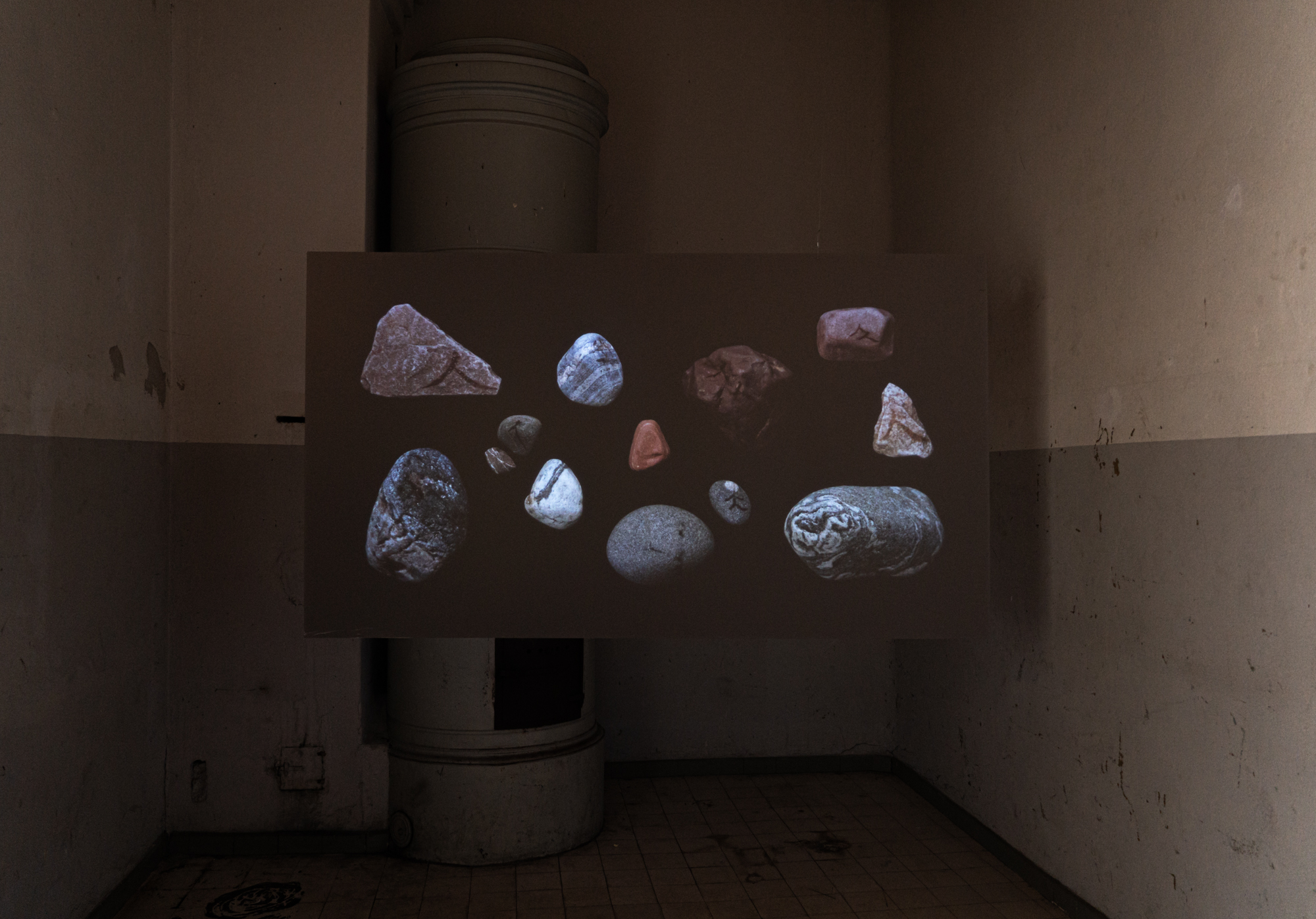 Silottuen, kuluen (Smoothing, Wearing) is a video work, shot during one week residency at Öres artist residency in November 2022. The work is based on collaboration between Japanese calligrapher Yukina Yamamoto, performance artist Tuuli Malla and artist Mari Mäkiö. It consists of stones borrowed from the shores of the Örö island and Yamamoto’s calligraphy written with water to the surfaces of the stones. In the video japanese character 人/ hito/ human appears and disappears creating a meditative contemplation of the layers of time. The work was also inspired by the environment of the Örö island and it’s past as a military fortress.