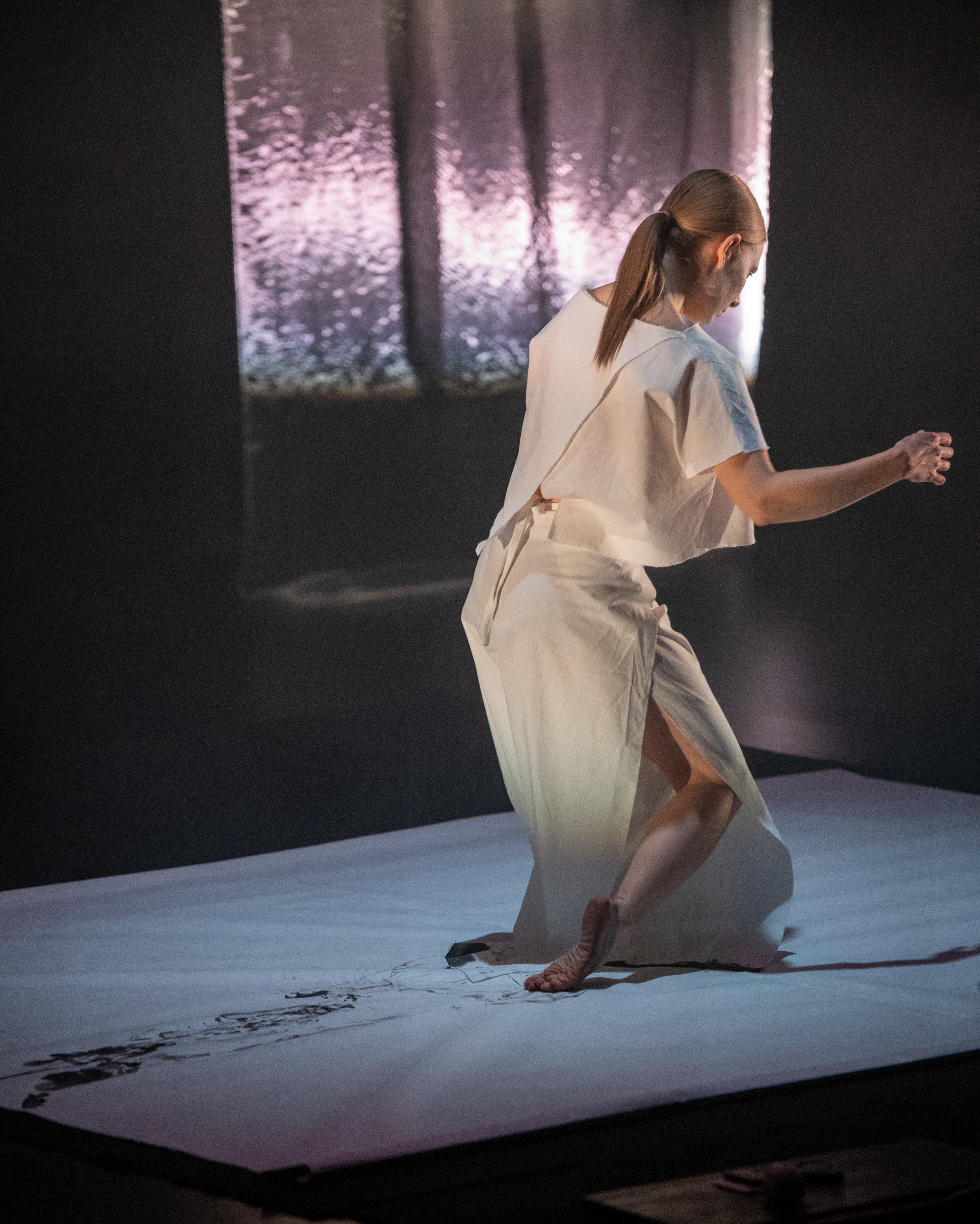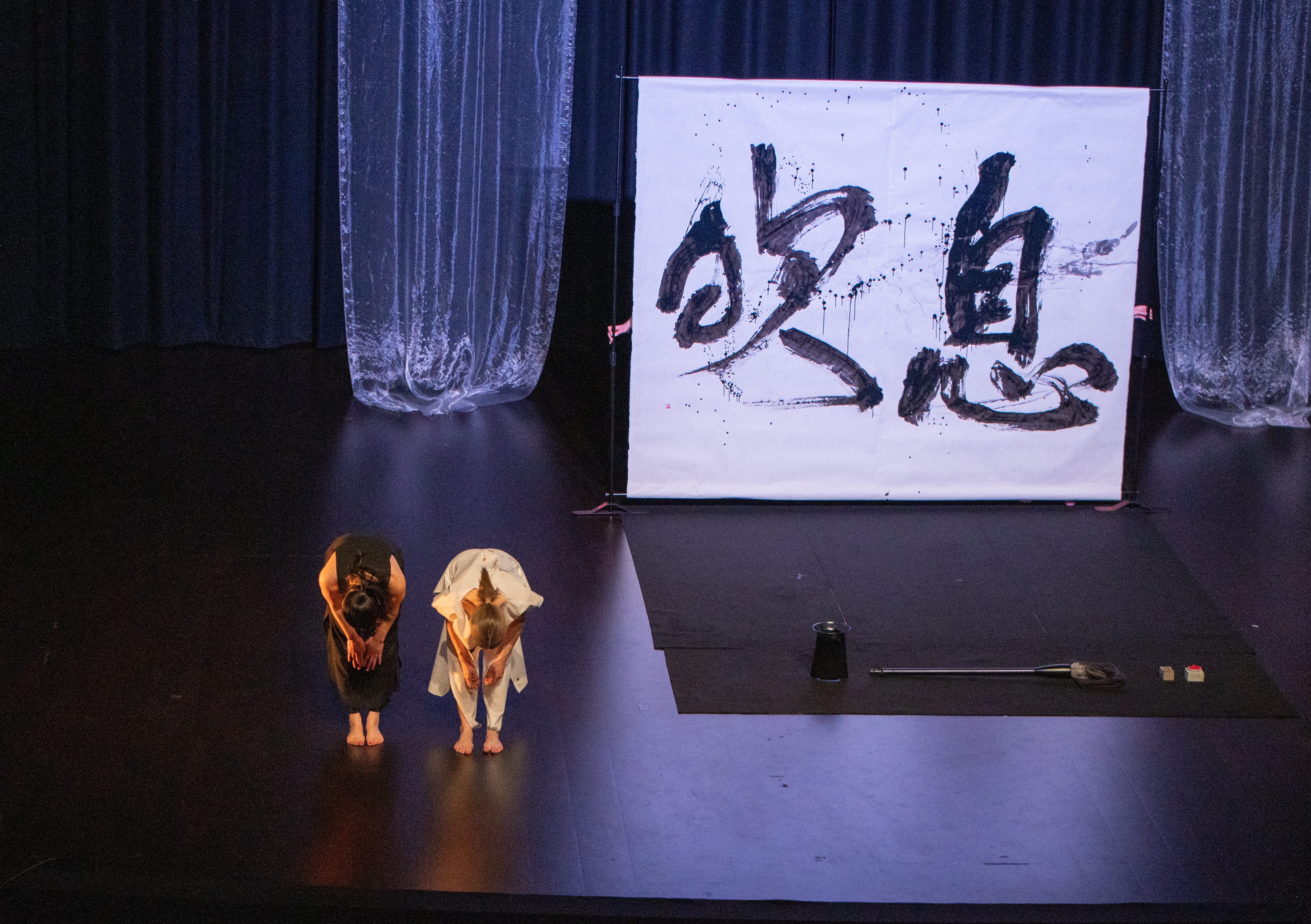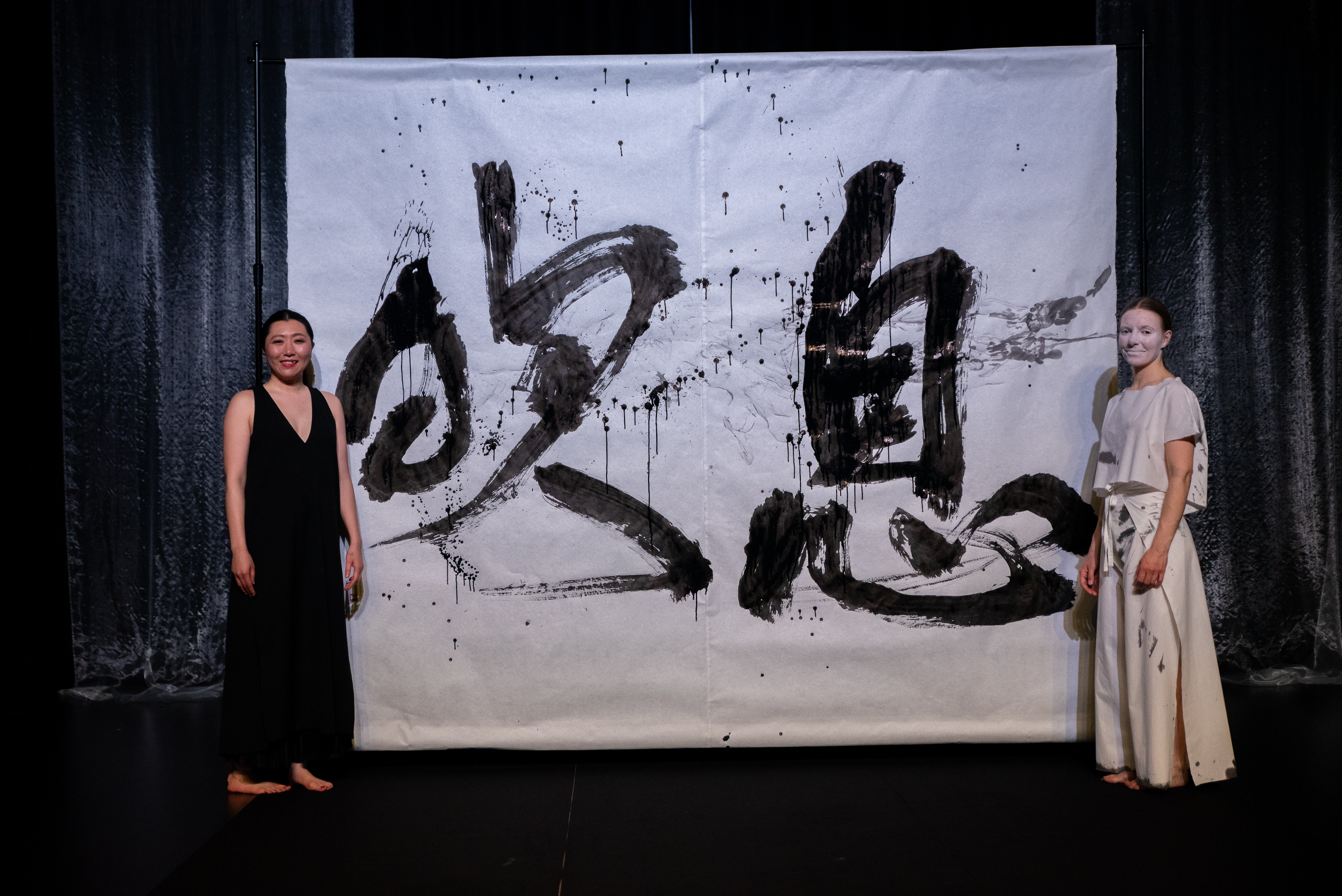 Yukina Yamamoto and Tuuli Malla have been exploring ibuki qualities through Japanese calligraphy and dance, embodying life’s cycles and breath with the body and calligraphy brush. The artists are also working with the connection between emotions and breath. Seeking pauses and peaceful moments, finding bursts of energy and sudden impulses. Transforming air with every breath.