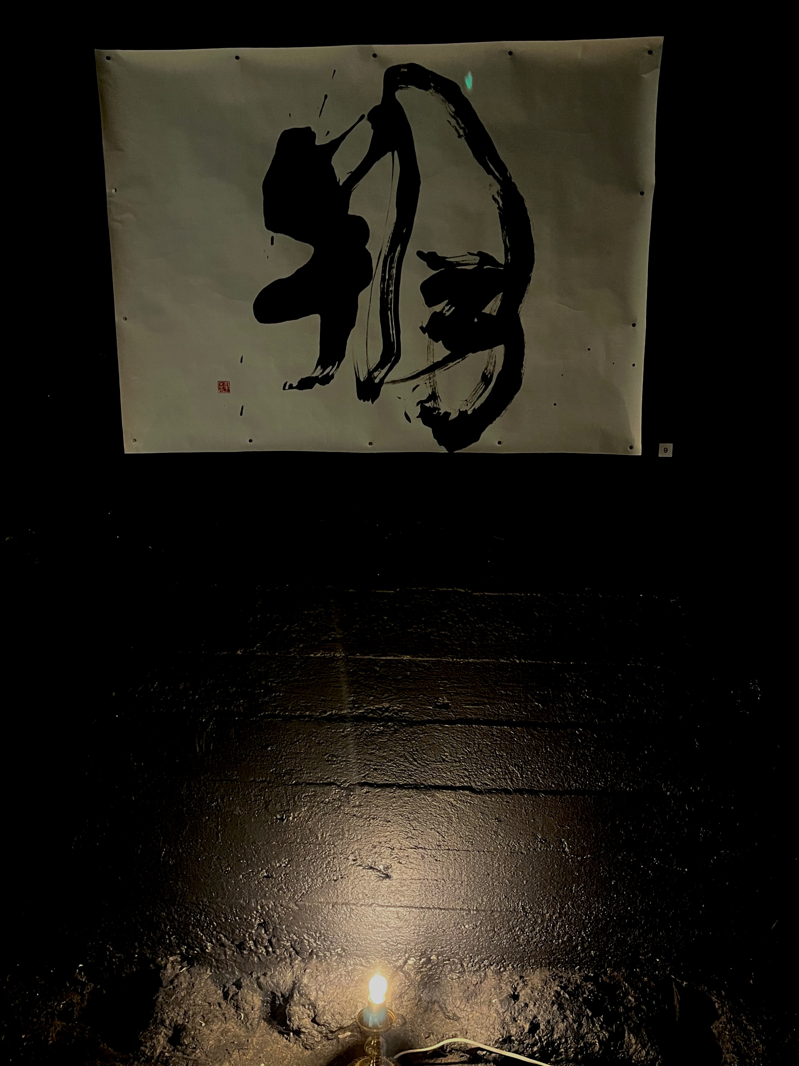 The 1st solo-exhibition ‘Sumi-ink in Darkness is inspired by the book 陰翳礼賛 (In praise of shadows) by Junichiro Tanizaki. Tanizaki discovered that Japanese appreciate the authentic beauty of darkness by using the quality of different elements (e.g. shadow, natural light, space). I want to conceptualise a pleasant space that incorporates Japanese calligraphy artwork to tackle the challenges associated with well-being during the darkness of Finnish winter such as depression, anxiety, or low motivation.