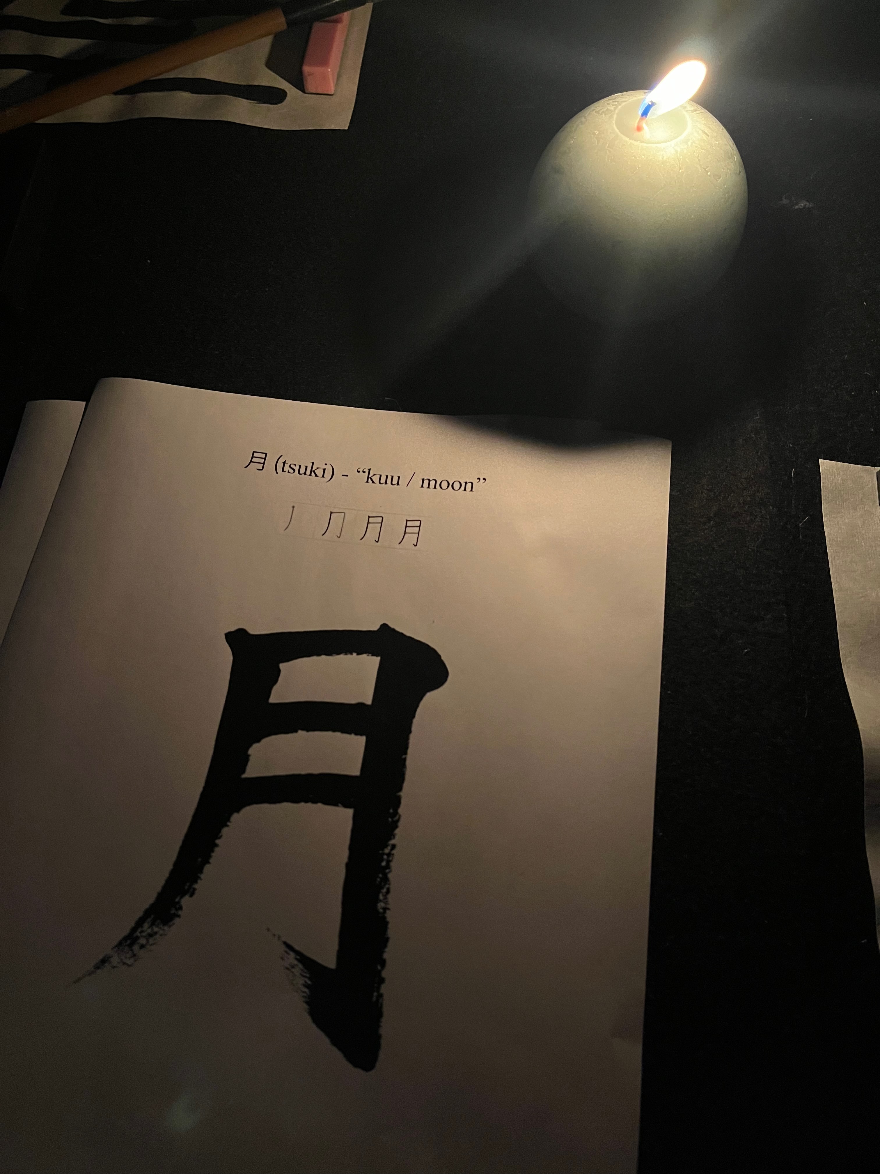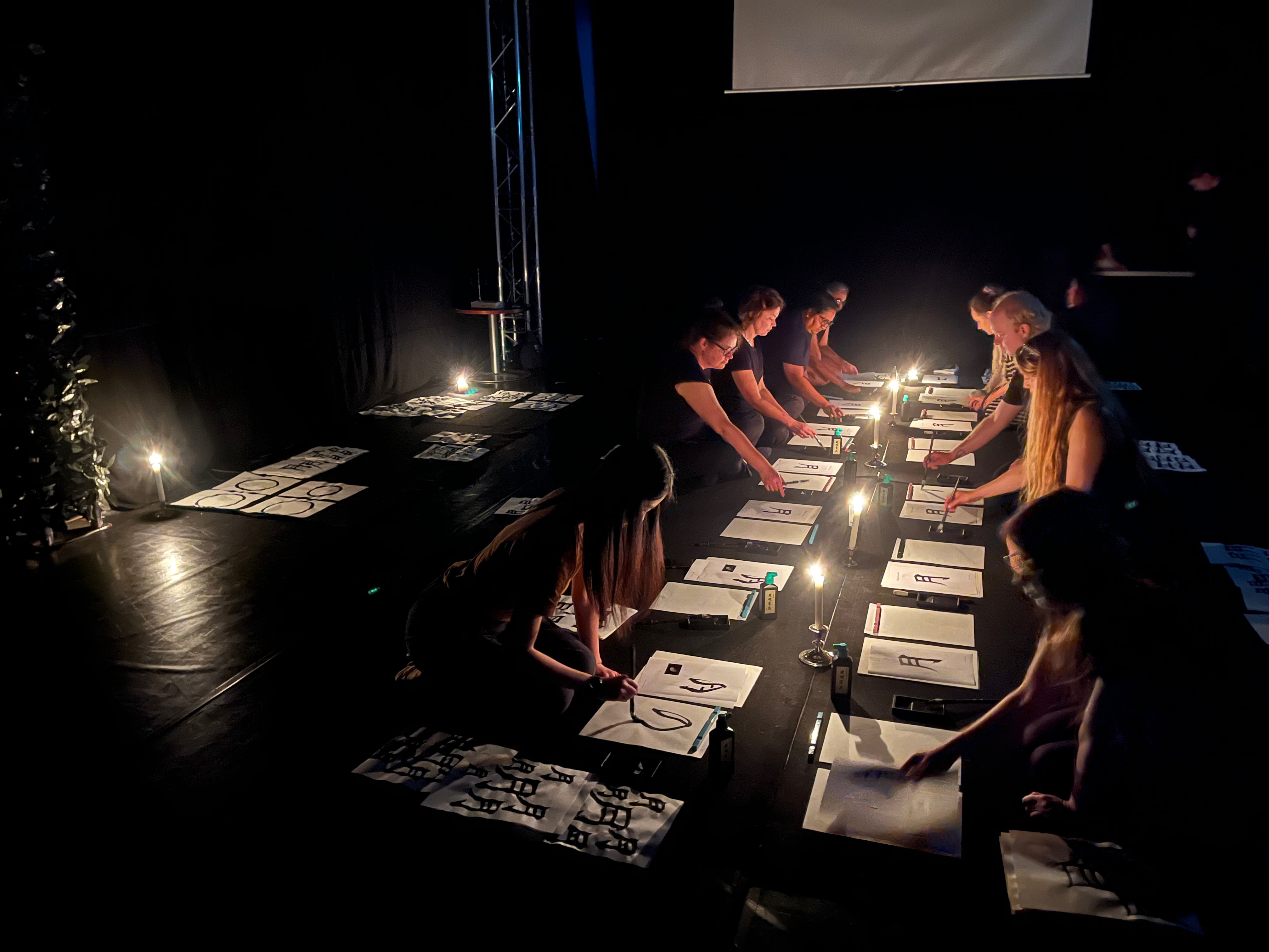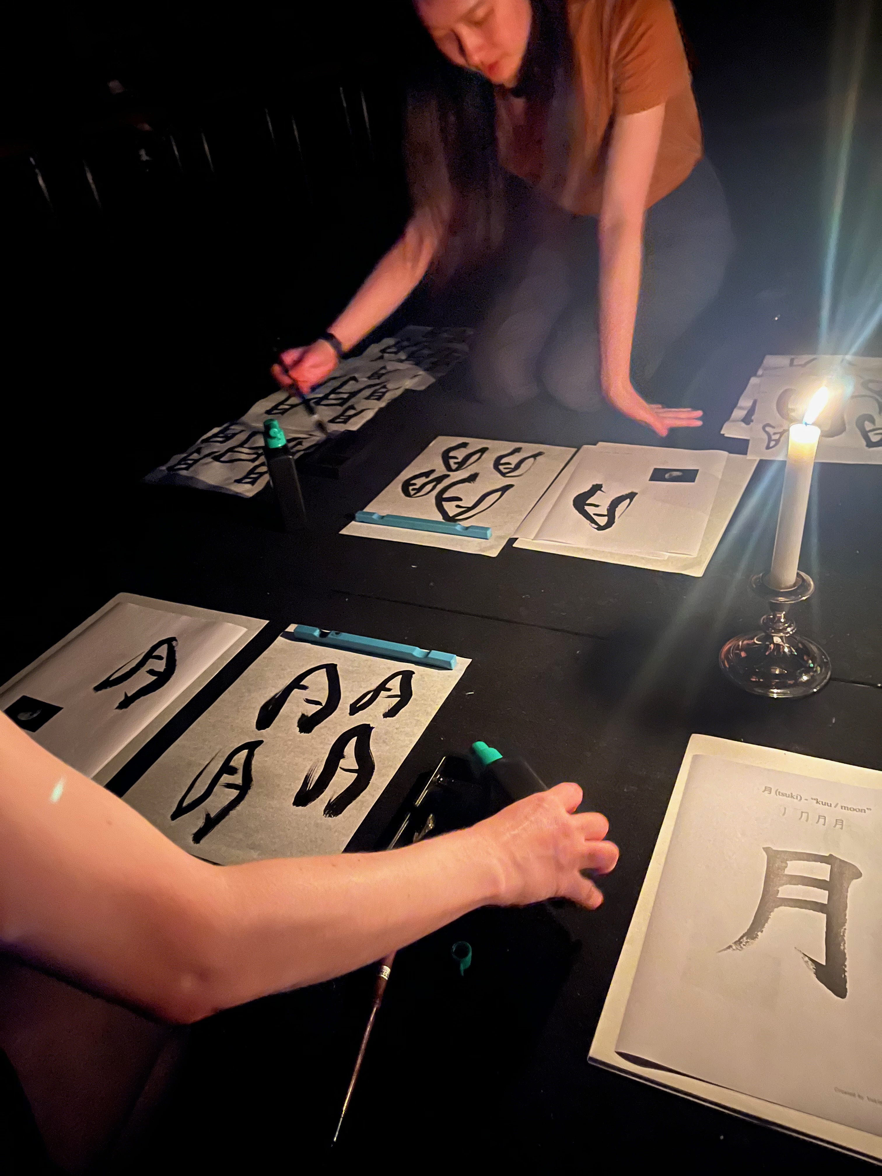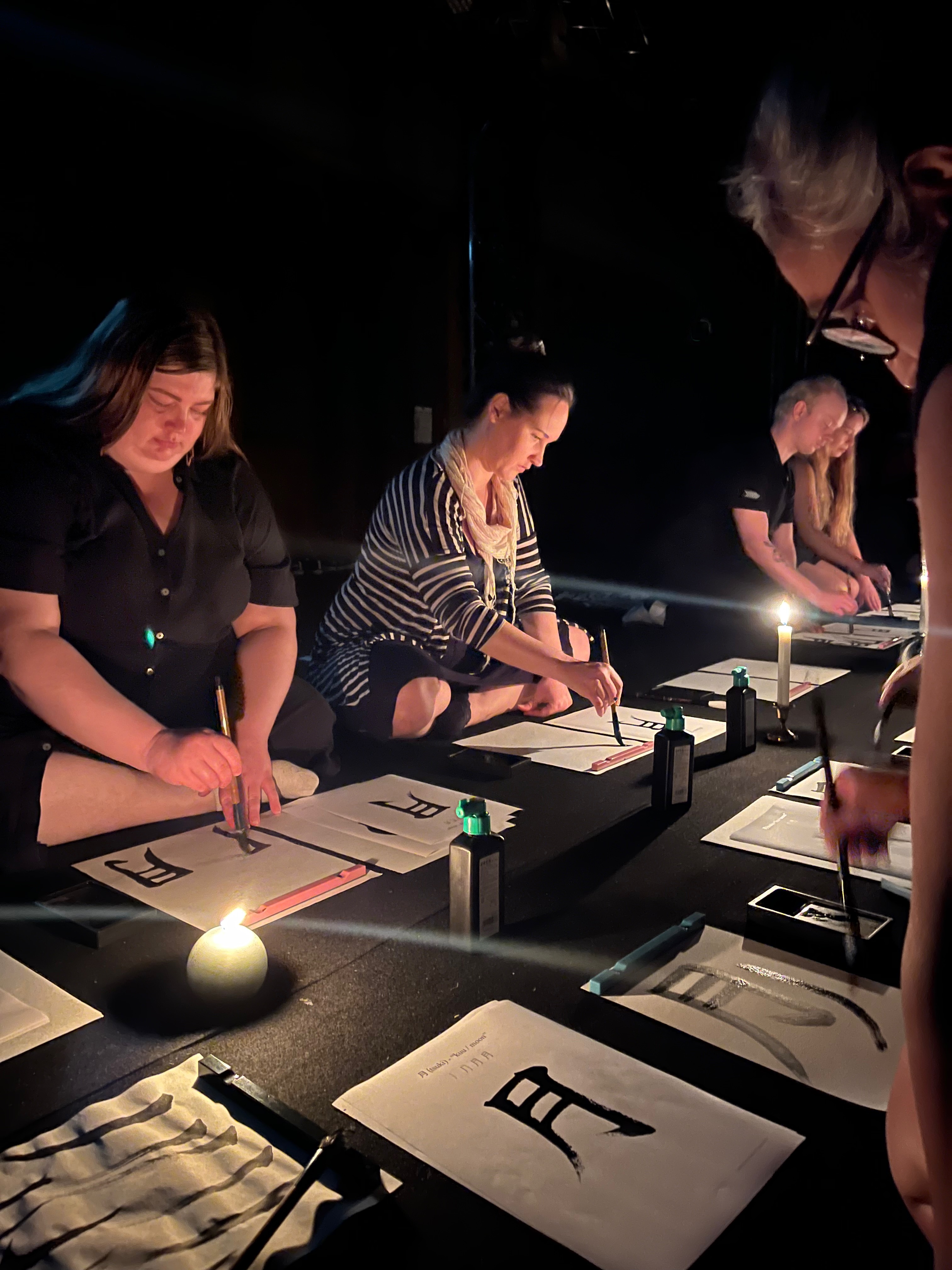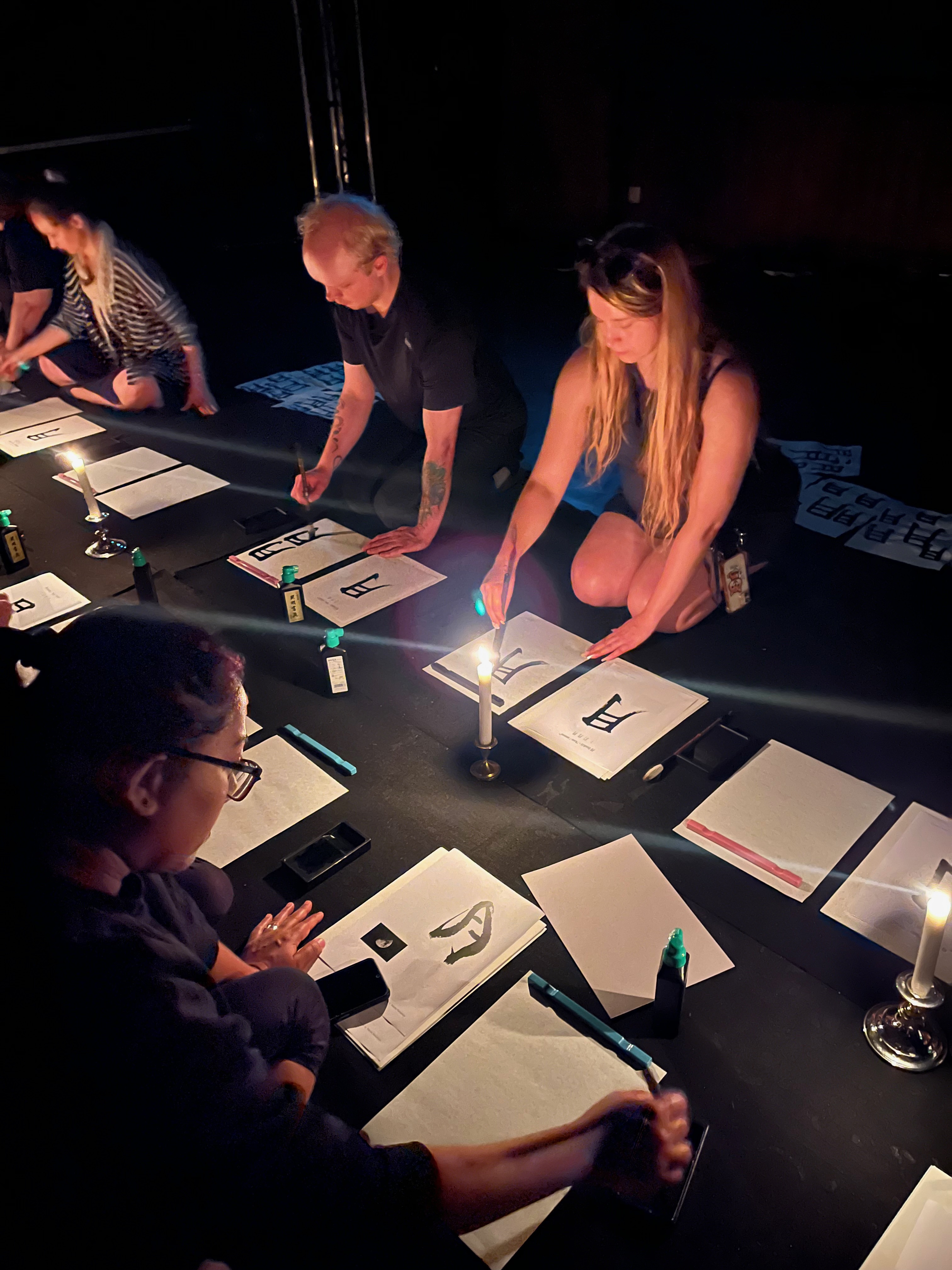 Työpajassa tutkittiin perinteistä japanilaista kalligrafiaa. Työpajassa työskenneltiin osin kynttilän valossa, keskityttiin oman hyvinvoinnin kehittämiseen sekä keskustellaan.